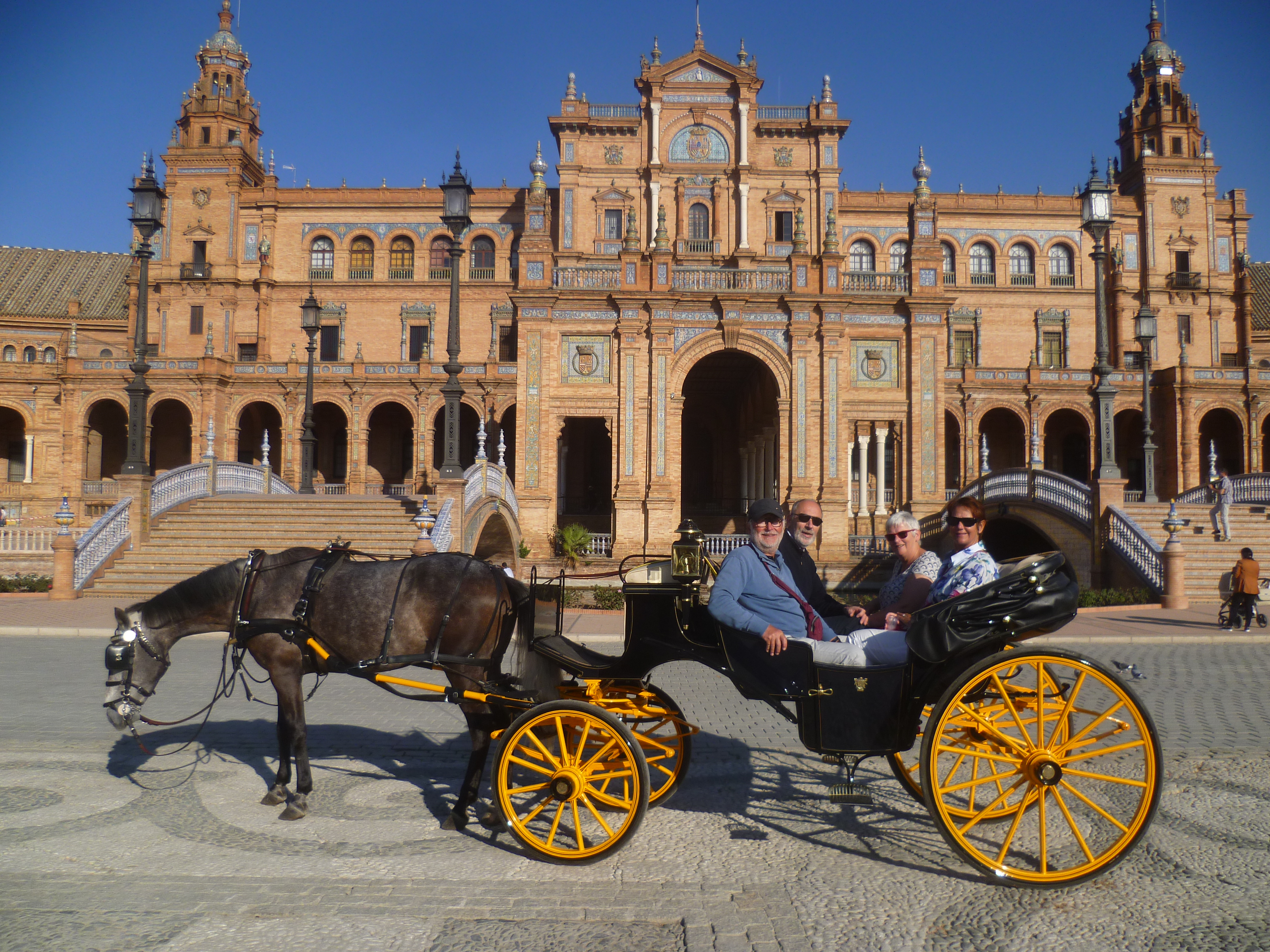 Sevilla is de hoofdstad van Andalousië gelegen aan de Guadalquivir. Een rivier die vroeger toegang gaf tot de zee maar nadien dichtslibde. Een zeer rijke monumentale stad vooral te danken aan de Moorse bezetting, gevolgd door een tweede bloeiperiode na de ontdekking van Amerika in 1492. Sevilla had toen het monopolie op de handel met de nieuwe koloniën. Columbus ligt trouwens begraven in de kathedraal.