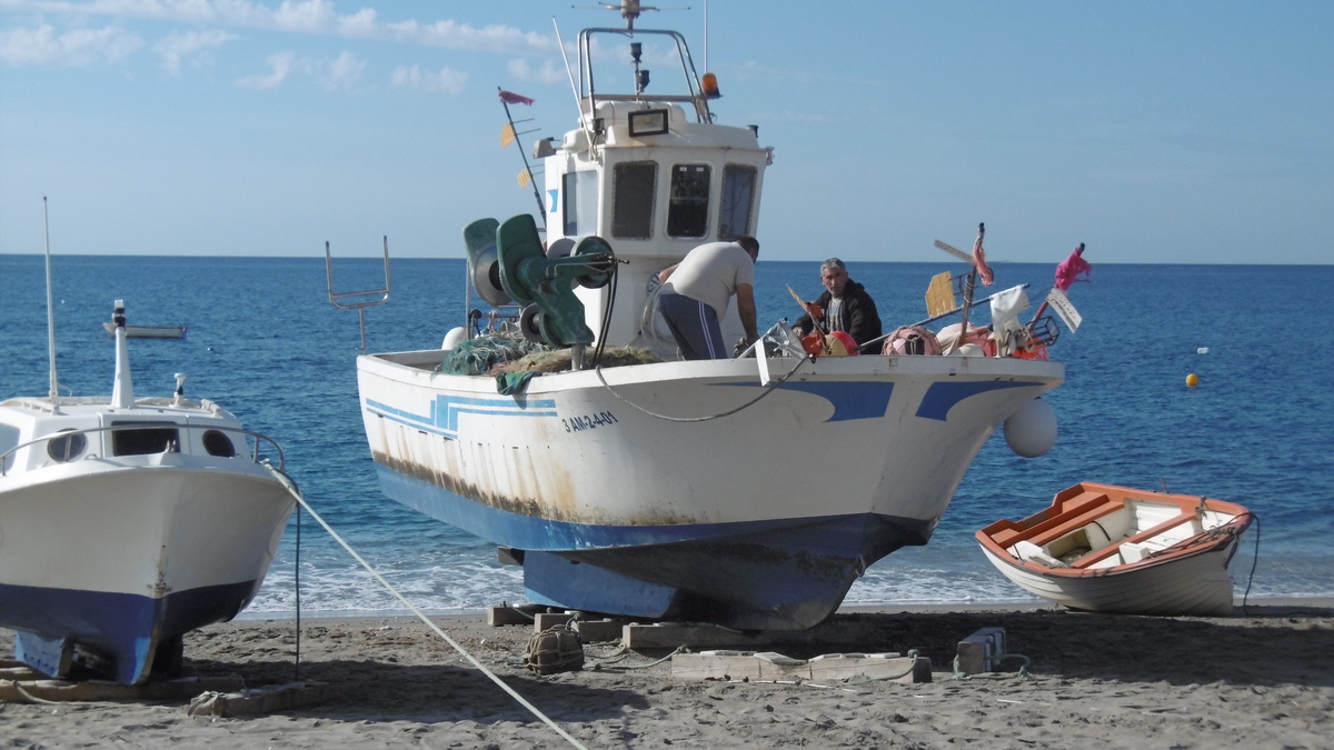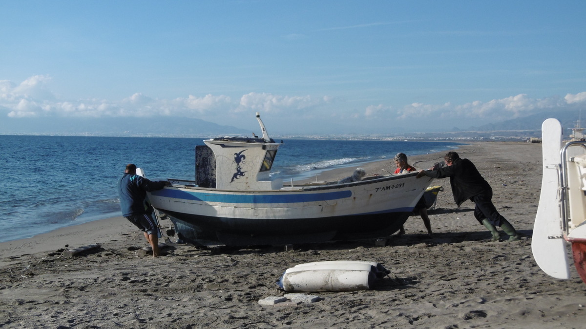 Op het strand staan de vissersboten: grote en kleine. En dat op zich is heel merkwaardig. Er is dus geen haven. De boten worden met lieren op het strand getakeld. Om ze in zee te krijgen schuiven ze op balken die met vet worden ingesmeerd. Deze techniek heb ik nog enkel daar gezien. De boten staan als het ware geparkeerd op de scheepshelling. Ook redelijk grote boten dus. (varadero = scheepshelling, varadas = geparkeerd op de scheepshelling)