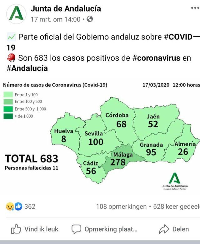 De evolutie van het virus wordt door de Junta de Andalucia nauwkeurig opgevolgd en de verschillende maatregelen worden goed uitgelegd. Ik voeg enkele schema’s hierbij om eens aan te tonen dat het er hier niet anders aan toegaat dan in België. Misschien zelfs beter.