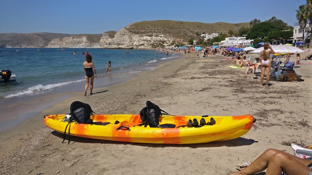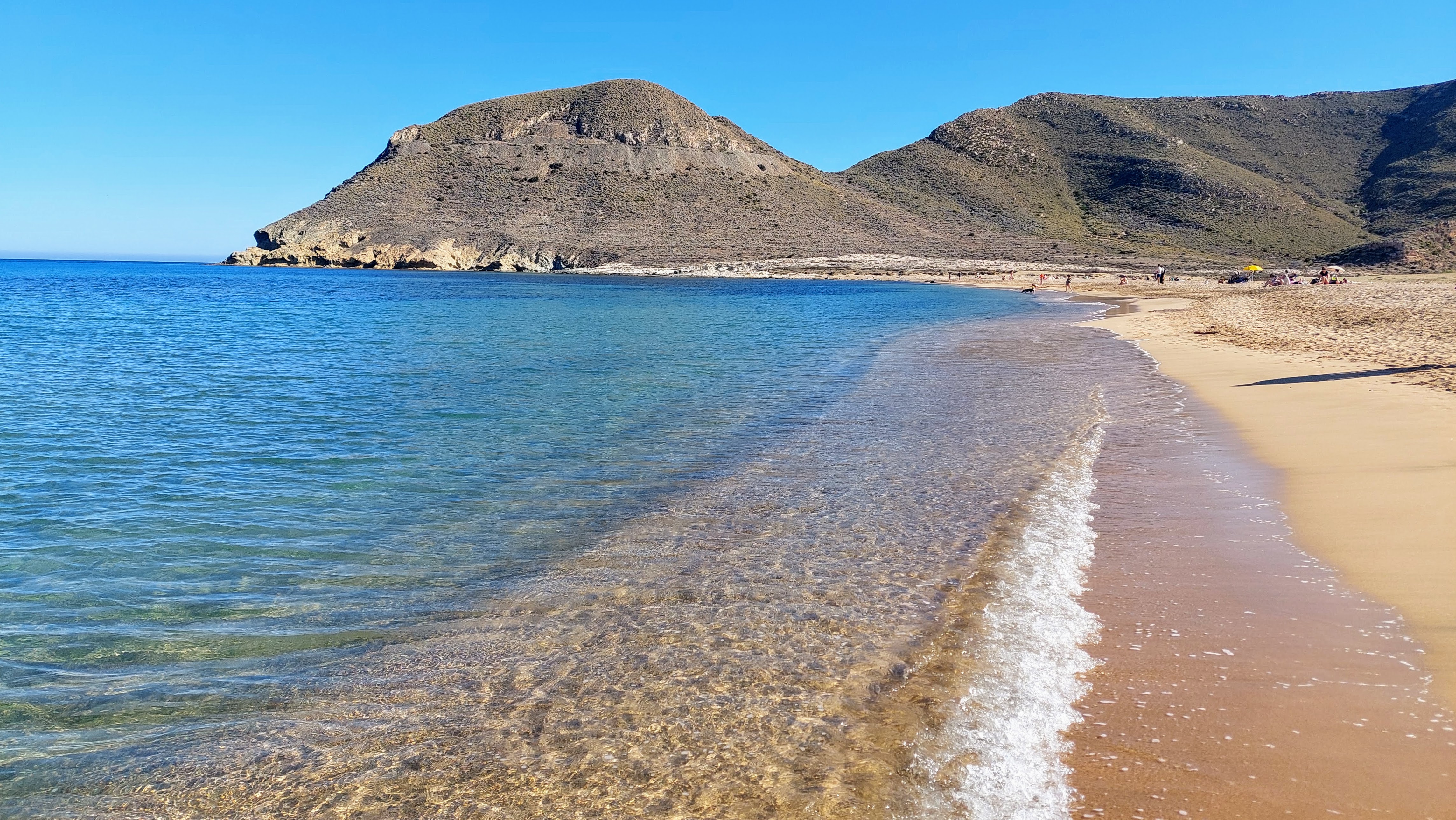 Agua Amarga: mooi plaatsje met mooi strand. Als de wind uit het oosten komt (Noord – Oosten) zit je er behoorlijk uit de wind op het strand. Je kunt er te voet naar het oude eindstation gaan van de trein die ijzererts aanvoerde vanuit de bergen. Er zijn enkele restaurants op het strand.