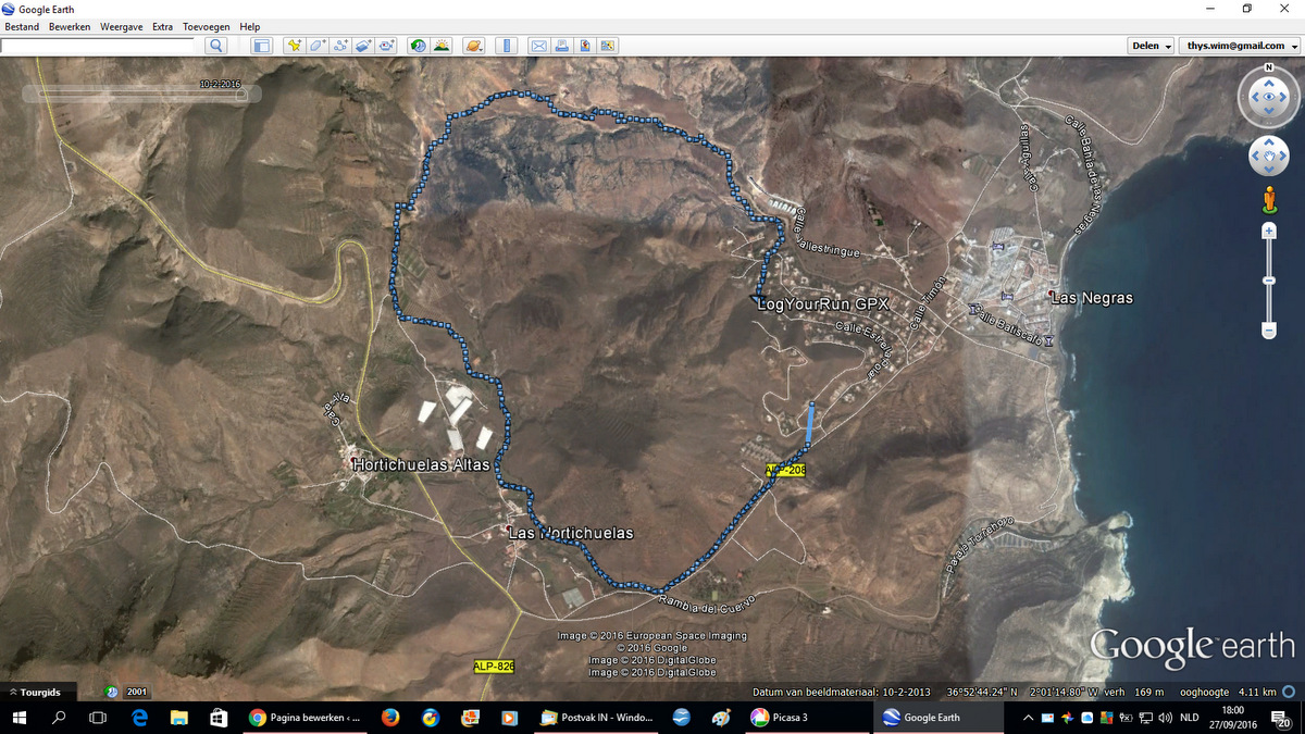 Er is hieronder een screenshot van de wandeling waarop je je kunt oriënteren. Van ons huis tot aan het begin van de weg door de bergen (dan ben je al door Hortichuela) is het al een uur stappen. Dan nog is een uur door de bergen langs een mooi pad tot aan de huizen waar onder meer Margaret Merry woont. Dan nog eens een 45 minuten stappen terug naar huis.